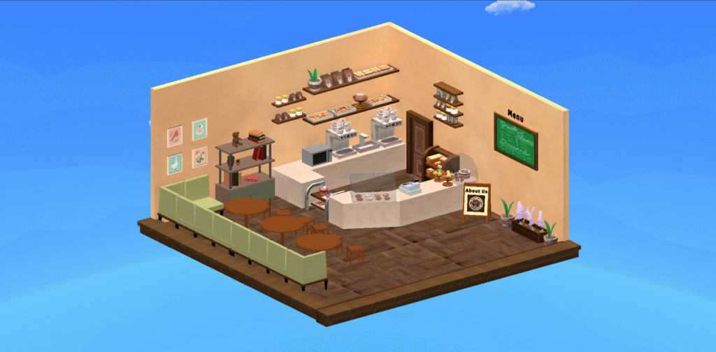 Step into our charming 3D café, where warm tones, fresh pastries, and friendly vibes come alive in a delightful virtual space. Explore every corner from the comfy seating to the pastry filled counter and experience the perfect digital blend of creativity and comfort.